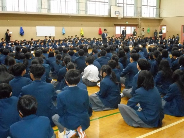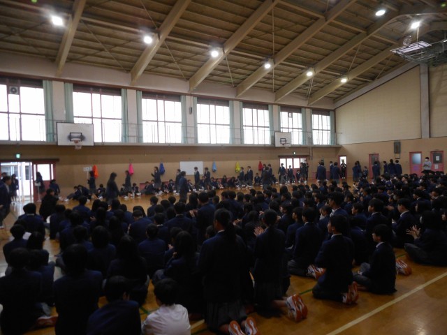 本日4限に生徒会主催で新入生を迎える会を開催しました。全校生徒が初めて一堂に会しました。生徒会本部・執行部が内容を工夫してくれたので大いに盛り上がりました。新入生誓いの言葉も素晴らしかったです。生徒会提案で歌われた校歌もきれいな声で体育館中を響き渡りました。