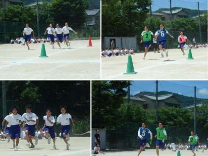 休憩のあと,各クラス作戦タイムを含めた練習時間。そのあと実際にタイムを測ってレースをしました。6組が2分を切る好タイムで1位となりましたが,作戦によっては,本番どうなることか。楽しみですね。