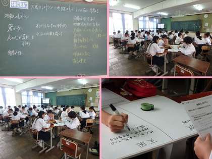 来週の体育大会を前にして,1年○組のレストランの客として,自分は今のクラスをどんなふうにしていきたいか,グループで話し合ったり,意見を発表したりして考えました。