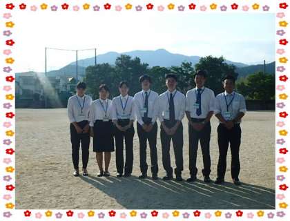 「約3週間,京都市立嵯峨中学校で教育実習生としてお世話になりました。休日参観や体育大会,日々の授業や生活など様々なことを経験させていただき,大変充実した学びある教育実習になりました。この経験を生かし,実習生一同これからも頑張っていきたいと思います。ありがとうございました。実習生一同」