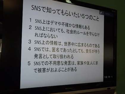 本校では,携帯電話の所持を認めてはおりませんが,クラスによっては,半数近くの生徒がスマホを持っているという現状です。どうしても使用することが必要な場合には,今日学んだことなどをしっかりと理解した上で利用するようにしてください。