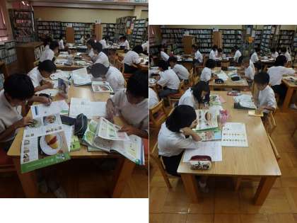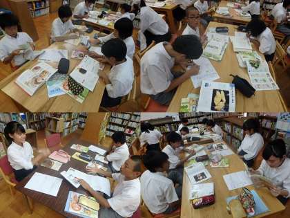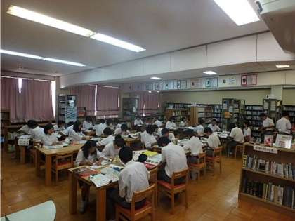 今日の技術・家庭科の時間に,図書館を利用して献立作成をしたクラスがありました。授業の途中で,教育委員会の先生と学校司書の先生がこられました。生徒のみなさんが熱心に学習に取り組んでいる様子を見ていただけたらよかったのですが,「図書館」で学習していることをちょっと忘れて,大きな声で話してしまう人があったのは残念です。でも,学校図書の先生が右京図書館等から借りてきて下さった多くのレシピ本がしっかりと活用されて,献立の作成が進みました。気に入ったレシピがあったら,ぜひ家で作ってみてくださいね。