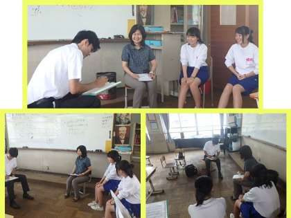 吹奏楽部は,8月11日(金・祝)に京都府合唱連盟主催のコンクールに出場します。今日は,朝日新聞社の方が,インタビューに来られました。
