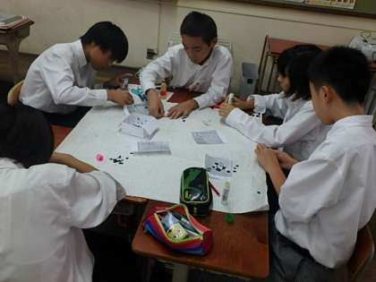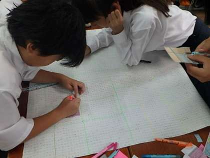 入念なチェックが終わり,貼り始める班も出てきました。まずは黒色からです。完成まで頑張りましょう!!