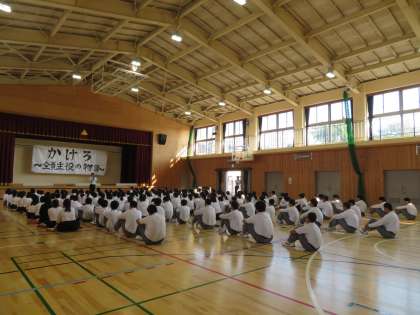 2年生は学年集会で金曜日に行われた合唱コンクールの振り返りを行いました。