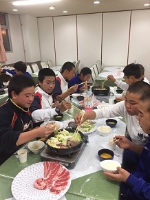 それから夕食。みんなですき焼きをモリモリ食べています。美味しそう!&楽しそう!!! しっかり食べて合宿を乗り切って下さい!