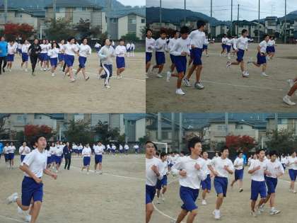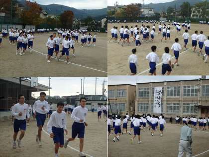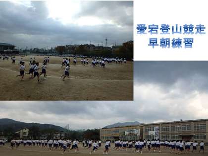 来週に延期になっている愛宕登山競走に向けて,今日朝練習がありました。8時に一斉に走り始め,15分間,自分のペースで走ります。途中,ゆっくりになっている人に「頑張ろう!」って声をかけている生徒も。みんなが走っているときに登校してきて慌てて着替えに教室に行っている生徒もいました。明日も朝練習がありますから,明日は余裕で登校できるように,今日の夜から段取りしておいて下さいね。