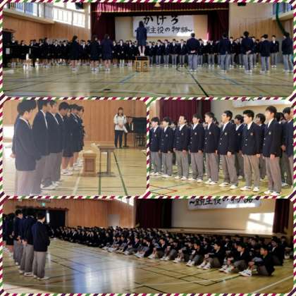 今日も1年生は,明日の新入生保護会での発表に向けての練習を行いました。今日は,入退場も含めての練習です。いろいろと覚えないといけない動きがありますが,生徒達はきびきびと動いていました。前向きな,やる気の感じられる動きでした。