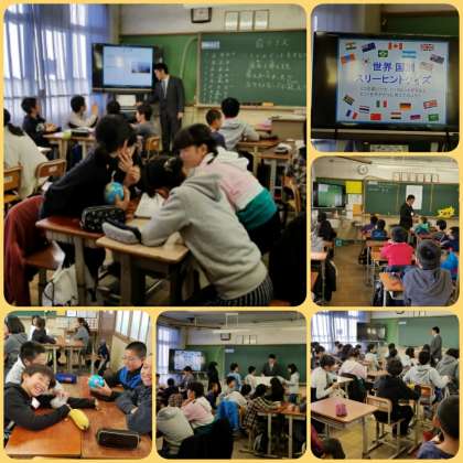 ▼社会「国クイズ」という講座でした。4人グループを作り,小さな地球儀を使って,国を当てていました。とても楽しそうにやっていました。