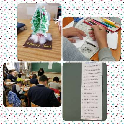 ▼育成学級では「クリスマス飾りつくり」が行われていました。飾りを切って色を塗ったりして,ツリーを作って飾るという内容でした。
