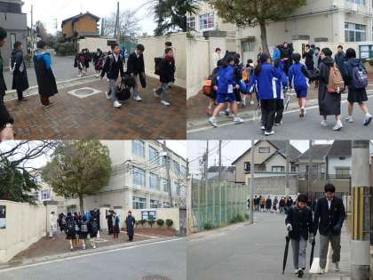 今朝の登校の様子です。冬休み明け最初の日だったので,教員も全員で登校指導にあたりました。冷え込んでいましたが,8時23分にはほぼ全員が登校しました。