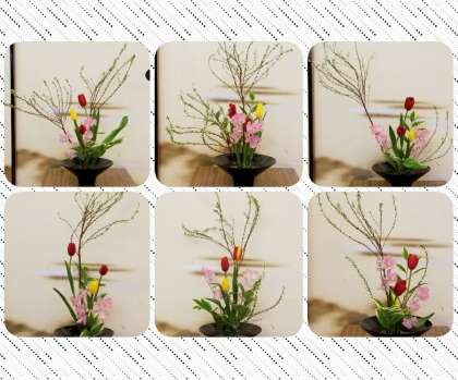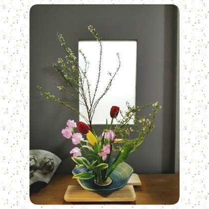自由花ですので,花と花との空間に気をつけながら,春を待つ気持ちで自由に生けました。