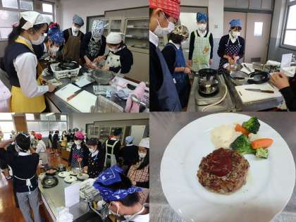 4限は2年5組がやりました。ハンバーグの中に入れる玉ねぎは,「炒める」「炒めない」は班で選択しました。果たしてどちらがよかったでしょうか。せっかく実習で行ったのですから,おうちでも実践してもらいたいと思います。そして,基本のハンバーグをばっちり作れるようになったら,ぜひアレンジも考えて挑戦してほしいです。