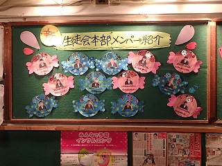 一人一人の名前と写真が使われているところは,残念ながらズームできませんが,雰囲気を味わってください。とにかく,工夫の凝らされた,ポップな雰囲気の楽しい掲示板です。50期生徒会本部役員のみなさんが,明るく楽しく元気よく活動をしている様子が生き生きと伝わってきます。