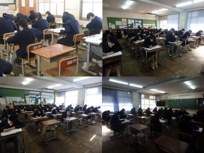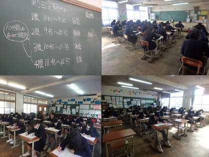 このテスト中に,学校側では,公立前期の願書点検が行われたり,私学の出願を行ったり…と,入試に向けての準備が着々と進められています。今日でテストが終わりますが,まだまだ気の抜けない日々です。3年生の皆さんには,くれぐれも体調に留意し,学習に励んでいただければと思います。