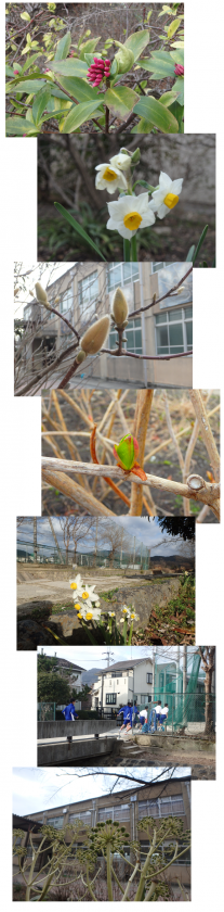 写真を撮るなら,梅がぽつぽつ咲いてきていますよ,と用務員さんが教えて下さいました。見に行くと確かに咲いているのですが,高いところでぽつぽつ…だったので上手く撮れず。