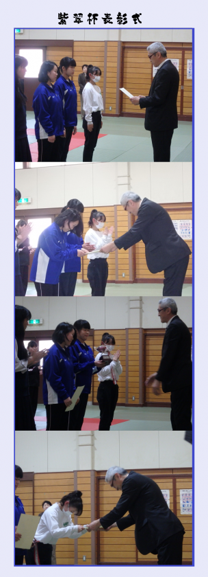 表彰式が行われました。優勝した嵯峨中Aチームには,個人賞状と紫翠杯が,準優勝の嵯峨中Bチームには個人賞状が渡されました。