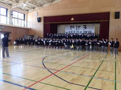 今日の昼休み,体育館で練習をしました。とりあえず並んでみた,という感じで,歌も少ししか歌えませんでしたが,学活の時にしっかりと練習できるよう,今日の立ち位置を覚えておいてほしいです。