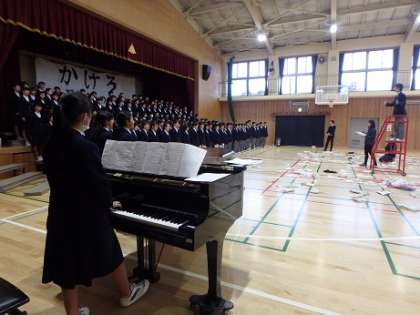 歌の他にも入退場を確認したり,その他3年生に見てもらうための「アレ」を練習しました。「アレ」はとっても難しく,ちゃんと覚えていない人もいて,ちょこちょこ修正されていました。