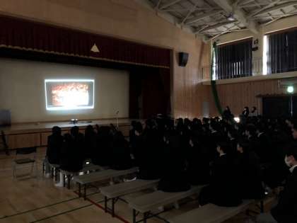その後は,3年間のムービーを見ました。懐かしい写真に驚きや笑いが起こっていました。