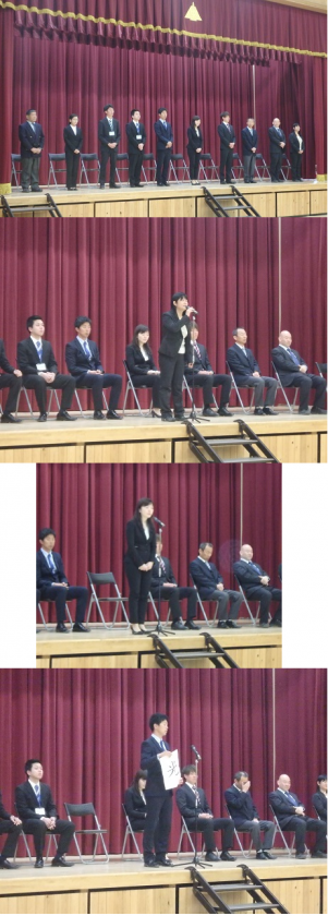 壇上に座られ,まずは校歌斉唱。嵯峨中学校で聞いていただく最後の校歌に,もう涙を流しておられる先生も。そのあと校長先生からお一人ひとりについての紹介があり,離任される先生方からお話していただきました。
