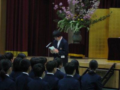 在校生代表歓迎の言葉、新入生代表の言葉も、落ち着いて堂々と力強く、この上なく素晴らしい出来栄えでした。吹奏楽部の軽快な演奏も、入学式に花をそえてくれました。