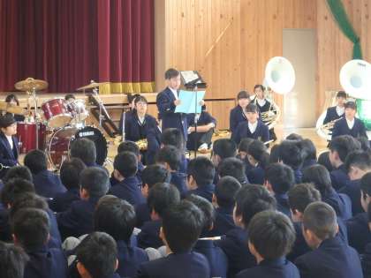 本日1限に対面式が行われ,今年度初めて全学年が体育館に集まりました。生徒会長のあいさつを始めとし,1年生代表のあいさつ,吹奏楽部の演奏,各学年担当教員の発表,1年生各クラスへ花の贈呈,『嵯峨中のために』と和気あいあいとした時間が流れました。