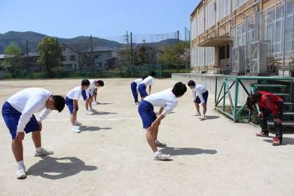 元気にあいさつをした後、自分たちで準備体操し、活動しました。