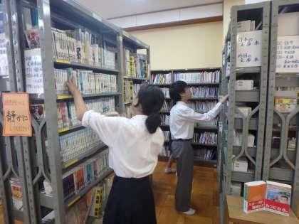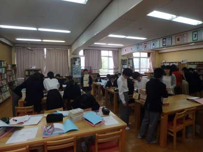図書委員会では,自己紹介と活動への抱負を発表したあと,学級文庫の貸し出しと書架整理をしました。