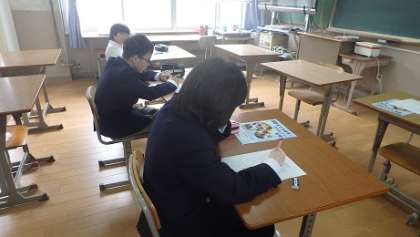 校内の先生たちの名刺を作る「名刺プロジェクト」順調に進んでいます。3年生は修学旅行に向けて民家さんに渡す自己紹介カード作りをしました。2年生はチャレンジ体験に向けての学習をしています。