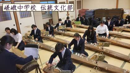 伝統文化部は,1年生10人を迎えました。9人が箏の練習を始めています。いろいろな曲を弾けるようになってほしいのですが,まずは基礎をしっかりと練習しないといけません。箏の初心者の為の練習曲が収められている「箏のバイエル−基礎編−」(水野利彦作曲)を使用し,基本的な手法,リズム,調絃等を学び,基礎をしっかりと身につけ,いろいろな曲が演奏できるようになってほしいと思います。