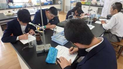 理科では、鉄と硫黄の混合物を加熱する実験をしました。安全第一で作業し、大成功です。