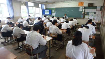 本日2〜4限に,3年生は学習確認プログラムを受検しました。今回は2日に分けて実施します。本日は国語・社会・数学,明日は理科・英語です。