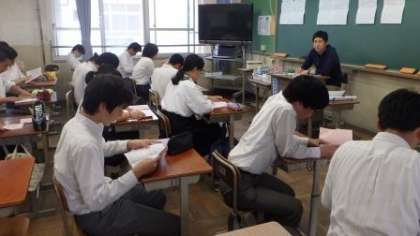本日6限の学活にて,3年生は修学旅行のしおり閉じと読み合わせを行いました。