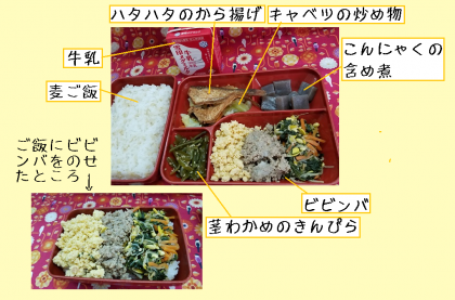 今日はビビンバでした。中学校の給食の献立では,月に1回は登場する感じです。今日の食育放送では,ハタハタについての話題がちょっと多くなりました。魚の栄養って,すごいなあと思います。食育放送5月21日分