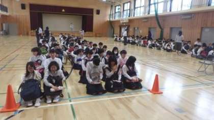 本日5・6限のエスで,3年生は修学旅行に向けて新幹線の乗降車練習・集合隊形練習をしました。