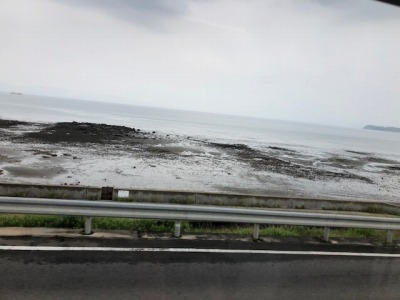車窓から有明海、そして干潟もみえました。まもなく南島原の入村式の会場に到着します。