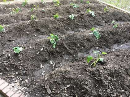 食べ物が不足した戦争中は、運動場ではこのような畑が作られていたそうです。