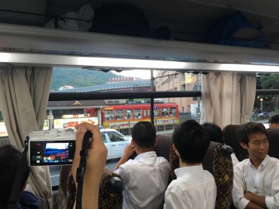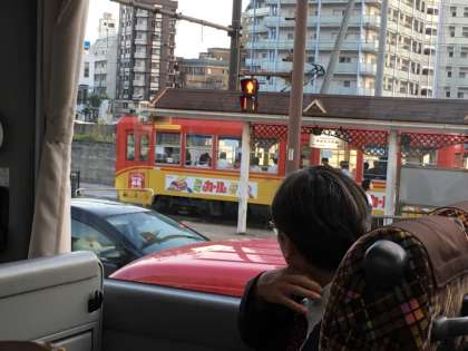 移動中のバスで、ラッキーな路面電車に遭遇しました。
