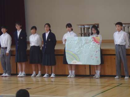 本日は学年集会で学級目標と学年目標の発表を行いました!まずは10組と1組の学級目標です。
