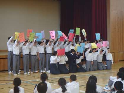 2組 「協力し合い 元気で明るく 笑顔がたえない 宇宙1のクラス!!」