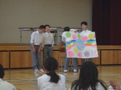 各クラスの代議員の人たちが感動あり、笑いありのお芝居を通して発表をしてくれました。