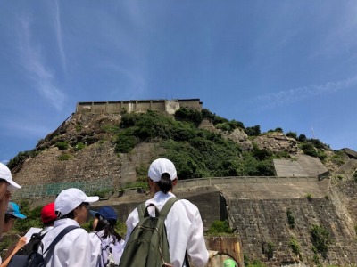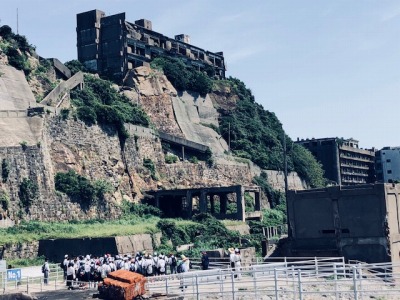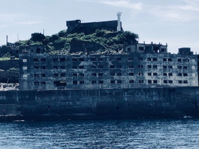 島の高いところには、神社、アパート、貯水タンク、灯台などがありました。