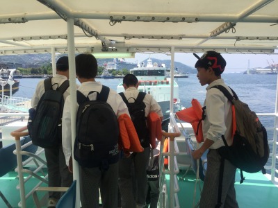 長崎港へ戻ってきました。軍艦島に上陸することができ,またフェリーからも沢山眺めることができたので,みんな大満足です。