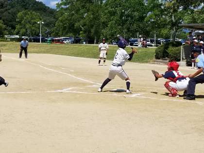 まずは,山城1位の宇治中学校とです。嵯峨中学校は,1回に2点,6回に1点をとり,相手チームは0点に抑えて見事に近畿大会出場を決めました!!