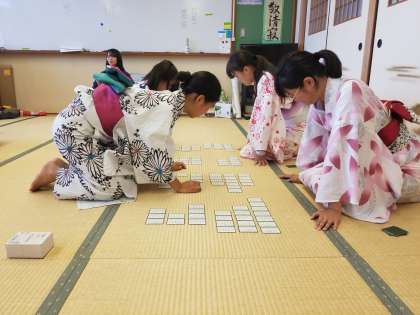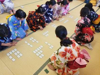 最後に,浴衣姿のままで百人一首をやりました。いつも通りの動きが取りづらいようでしたが,浴衣を着ていることを忘れてしまうくらいの盛り上がりがありました。