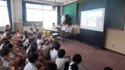 本日,嵯峨中パレードの広報本部は嵯峨小学校を訪問し,小学6年生に向けてパレードの説明を行いました。