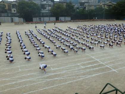 応援についての全体指示の後,まず,伝統の「嵯峨中のために」をやりました。