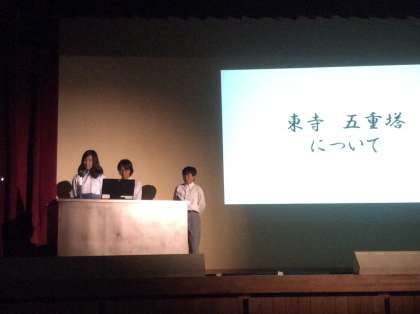 「京都の紹介したい場所はどこか」をテーマにそれぞれが調べ学習をしてきた中で,3人が代表して自分の調べてきた場所を発表してくれました。