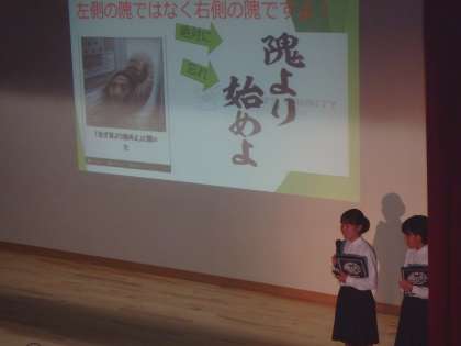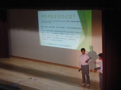 2年生による発表です。テーマは「つなぐ 未来へ向けて守るべき町民環伝 隗よりはじめよ」!